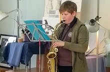 Праздничное музыкальное поздравление для преподавателей и обучающихся МБУ ДО «Детская художественная школа №1 им. И.И. Шишкина ЕМР» подготовил ученик 2-А класса Васильев Потап. На саксофоне, в его исполнении прозвучали классические произведения. Все ребята вдохновились его музыкой. Были сделаны зарисовки музыканта с натуры, на основе которых будут сочинены композиции. Спасибо Потап!