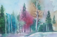 Выставка акварельных пейзажей, выполненная обучающимися 4-Б класса МБУ ДО «Детская художественная школа №1 им. И.И. Шишкина ЕМР» (преп. Самойлова Л.С.) расположилась в Центральной детской библиотеке.