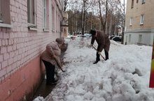 Сотрудники ДХШ №2 провели первый средник по уборке снега на прилегающей территории
