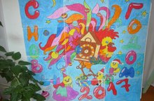 Наполнен будет смехом!В доме-интернате для престарелых и инвалидов оформлена выставка работ учащихся ДХШ №2 "Праздник к нам приходит". Ребята нарисовали символ года петушка.