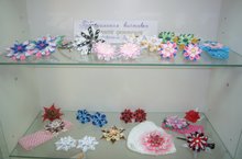 В ДХШ №2 открылась выставка работ преподавателя Хатиповой Гульнары Кабировны "Цветочные фантазии". Заколки, ободки. ажурные шапочки и броши украшают красивые цветы выполненные в технике канзаши.