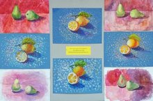 Вместе все зовутся…(Фрукты)Сочные, яркие фрукты в технике живопись мазочками гуашью и словно в дымке - акварелью на мятой бумаге нарисовали учащиеся 2па, 2пб классов (преподаватель Васильева Наталия Владимировна). Выставку работ можно увидеть на 3 этаже школы.