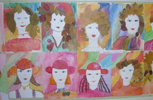 Дамы в осеннем наряде расположились на выставке в ДХШ №2. Учащиеся подготовительного класса "Лучики - 3" (7 лет) под руководством преподавателя Салимовой Амины Минахматовны сделали творческие работы в смешанной технике, акварельный наряд был украшен аппликацией из настоящих листьев.