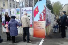 9 мая на площади Ленина работала передвижная выставка I открытого муниципального конкурса творческих работ «Война глазами детей»