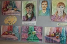 В фойе школы открылась выставка акварельных работ учащихся 3А класса "Акварелька" преподавателя высшей квалификационной категории Аммосовой М.А. На выставке представлены учебные работы в жанре портрет и натюрморт.