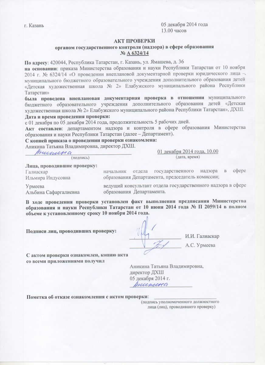 Предписание Департамента по надзору в сфере образования от 10.06.2014 № П 2059/14