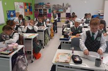Учитель технологии Томилова Гульназ Харисовна провела урок творчества в 4 В классе на татарском языке. Ученикам было предложено смастерить татарский национальный головной убор тюбетейку. Обучающиеся с большим удовольствием принялись за творческую работу, в ходе занятия общались на татарском языке и изучали новые слова.