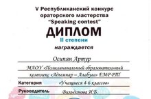 3-4 сыйныфлар арасында: 1 нче урын - Елдашов Давид (3Г); Куликов Максим (4Д); Дмитриев Арсений (4Д).