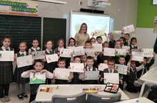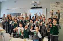 On November 15th, Voevodin Rodion's mother was invited to school. She came to give a Master-class with Flash Mob for children of 1st "B" grade. The pupils were very happy to make a paper toy and a funny flash mob.