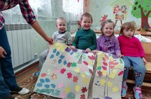 Балалар тәрбиячеләре Гайнанова Регина Рафаиловна белән берлектә табигатьтәге көзге үзгәрешләрне, әзер детальләр ярдәмендә кәгазь битенә ябыштырдылар. Детальләр зурлыгы, төсе, формасы белән аерыла. Балаларда аппликация сәнгатенә кызыксыну уянды.