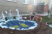 Нынче в нашем саду появился красивый пруд. Здесь плавают золотые рыбки, важно сидят лебеди, расцвели кувшинки. Просто волшебство!