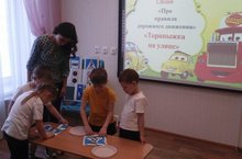 Сегодня, 20 февраля, в логопедической группе №7 прошло тематическое занятие «Нам на улице не страшно!», где дети закрепили азы «дорожной премудрости». Воспитанники успешно справились с такими заданиями, как «Собери дорожный знак», «Весёлый жезл», разгадывали ребусы и загадки.