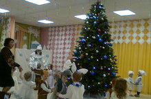Сегодня 25.12.15 г. в нашей группе № 14 прошел новогодний утренник. К нам приходил Дед Мороз со Снегурочкой, Снеговик, прибегали греться зайчата и медвежата, прилетали снежинки-белые пушинки. Было очень весело: мы играли, водили хороводы, читали стихи Деду Морозу.