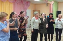 Педагоги ДОУ применяли на практике новое направление "Трэш-арт", что в переводе "мусорное" искусство. Из бросового материала (фантиков и пакетиков изпод кофе) воспитатели изготовили тренажёр для дыхательной гимнастики.