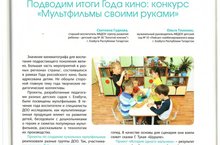 Читайте в журнале «Справочник старшего воспитателя дошкольного учреждения» №11/2016г. статью «Подводим итоги Года кино: конкурс «Мультфильмы своими руками», в которой представлен опыт работы МБДОУ «ЦРР-детский сад №38 «Золотой ключик» ЕМР. Вот уже второй год в апреле, двери детского сада открываются для всех творческих педагогов, которые собираются в ДОУ на слёт творческих педагогов «И творчество, и вдохновение, и мастерство – единство трёх!».