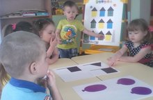 В младшей группе № 3 еженедельно проводится кружок "Развивай-ка", целью которого является познавательное развитие детей. На занятиях проводятся различные игры, например такая игра как "Собери квадрат". Дети подбирают по внешним признакам недостатающий рисунок.