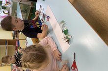 Сегодня с детьми подготовительной закрепили составлять коллективную композицию из ленточных аппликаций, деревья вырезали из бумаги сложенной гармошкой.