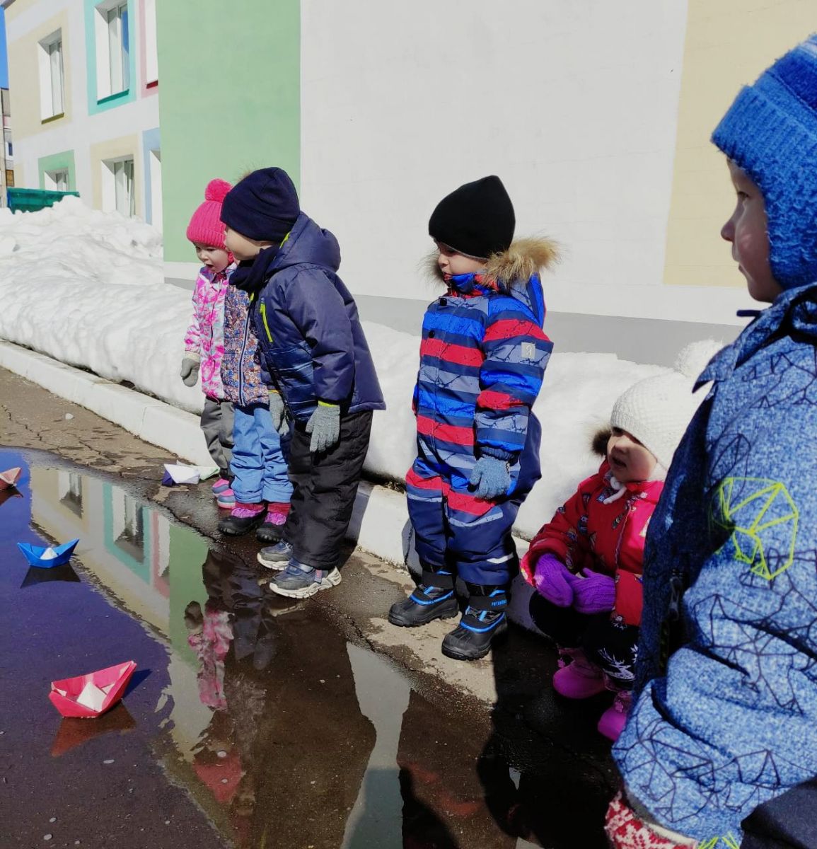 Наступила весна. Растаял лёд, зажурчали весенние ручейки. Маленьким детям очень нравится мастерить и пускать кораблики. Все кораблики очень разные: синие, красные, белые. Вот и мы сегодня с детьми отправили наших корабликов в новое путешествие по весенним ручейкам.
