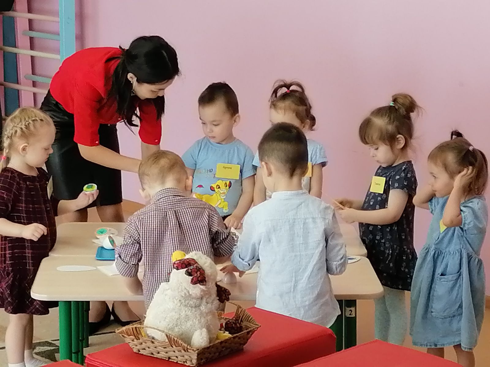 «Җитез бармаклар» түгәрәгендә «Аюга җылы булсын өчен» уены үткәрелде. Балалар кәгазьне ВАК итеп өзеп Аюнын оясына салырга өйрәнделәр.