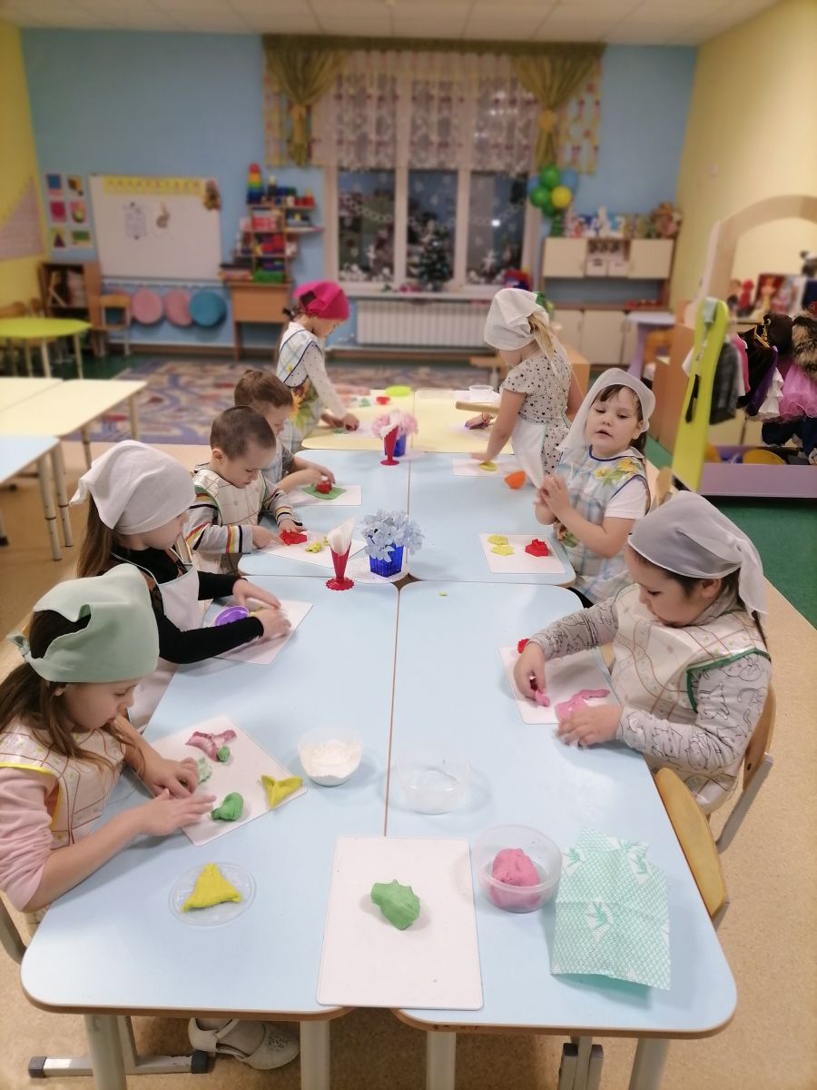 Так, в старшей группе для знакомства с блюдами национальной кухни татарского народа, дошкольникам было предложено слепить из солёного теста очпочмак, кыстыбый, балиш, где дети познакомились с секретами приготовления этих блюд,что также сопутствует дальнейшему появлению интереса к культуре и традициям татарского народа.