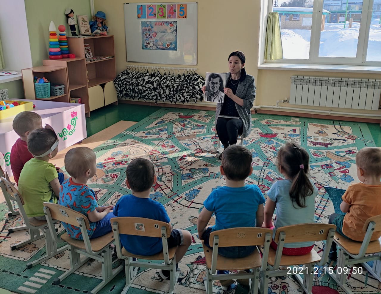 Сегодня воспитанники детского сада слушали рассказ о жизни и творчестве татарского поэта М. Джалиля. Узнали о его подвиге и слушали стихотворение "Красная ромашка", после было обсуждение услышанного.