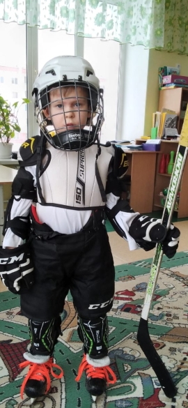 На улице сейчас стоит очень морозная погода и мы не смогли выйти на участок, чтобы провести спортивные соревнования. Зато, в спортивном зале дети смогли увидеть спортивный инвентарь для зимних видов спорта- лыжи, хоккейные клюшки и поиграть, представив себя хоккеистами- нападающими и вратарями. Все показали себя настоящими спортсменами – быстрыми, ловкими и упорными. Максим рассказал и показал, как выглядит хоккейная амуниция и как сложно её надевать.