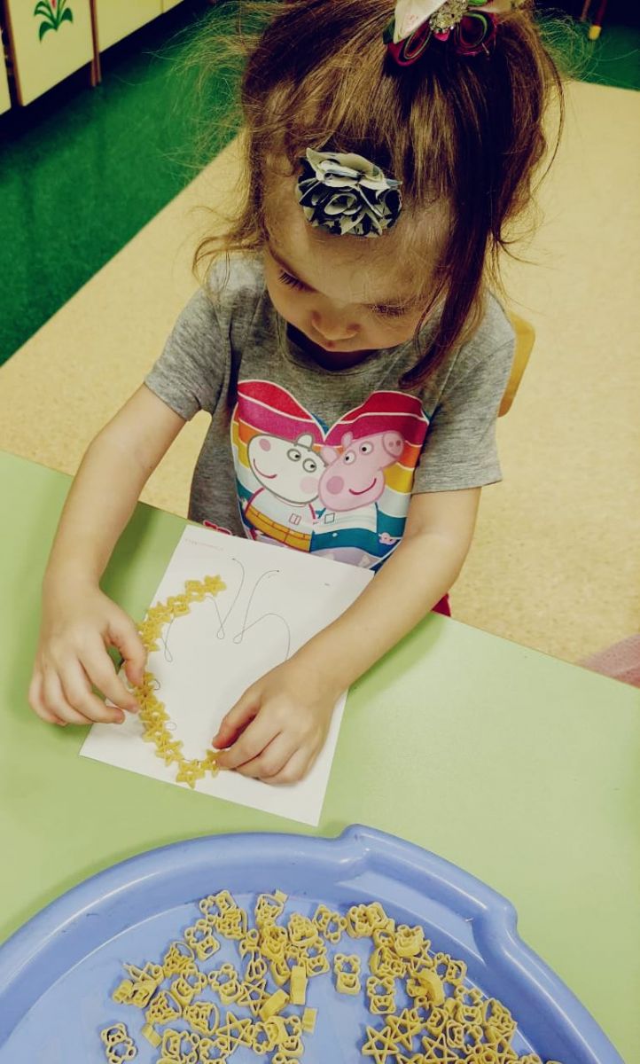 Бу уен моториканы үстерү өчен менә дигән тренажер. Шулай ук әлеге уен логик, образлы фикерләүне, иҗатны үстерә. Мондый уенны ясау бик гади. Баланың яшенә карап, рәсемнең катлаулылыгын сайларга кирәклеген истән чыгармагыз. Уен өчен ярмалар, сәдәфләр, ташчыклар кулланырга мөмкин, безнең очракта бу макароннар. Балаларга уен башында куркынычсызлык кагыйдәләре турында исләренә төшерү мөhим.