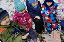 Детям радость-белый снег! Сегодня мы с детьми определили цвет снега. Затем каждый ребенок брал снег и смотрел на то, как он тает на ладошке и превращается в воду. Таким образом, дети пришли к пониманию того, что снег холодный, а ладошка теплая-поэтому снег тает, снег белый, а вода прозрачная.