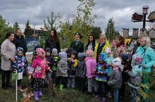 На экологической тропе, организованной на территории нашего детского сада, «вырос» настоящий лес, в котором имеются как лиственные, так и хвойные деревья. Еще четыре года назад нами были посажены сосны (обыкновенные). 17 сентября в рамках празднования Дня работников леса сотрудники Елабужского лесничества помогли нашему детскому саду в приумножении видового разнообразия хвойных деревьев на нашей экотропе, посадив совместно с детьми, их родителями и педагогами сосну крымскую, сосну горную, ели синие и ели обыкновенные, возложив на наших воспитанников ответственность по уходу за молодыми деревцами.