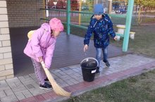 Шуңа күрә «Мультяшки» исемле әзерлек төркеме балалары читтә торырга теләмәделәр һәм шуңа күрә үз участогын җыештыруда ярдәм итәргә булдылар.Кривилева Э.Р., Гайфуллина Р. Р.