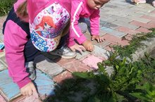 Ребята становятся настоящими художниками! Своими рисунками превращают серую асфальтную площадку в летнюю яркую полянку. Дети с огромным удовольствием стараются отразить все краски лета. Для этого они используют яркие мелки и радостное, солнечное настроение. Цветные мелки помогают детям отобразить задуманное.