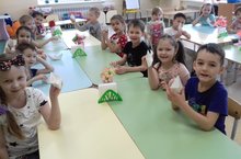 13 нче икенче кечкенәләр төркемендә "Әкият" балалар белән әңгәмә үткәрелде: "Җиңү Көне". Әңгәмәнең максаты - балаларның Бөек бәйрәм-фашист илбасарларыннан азат итү көне, "Җиңү көне" турында белемнәрен формалаштыру һәм үз иле өчен горурлык хисе тудыру. Әңгәмә барышында сугыш темасына рәсемнәр, иллюстрацияләр карадылар, сугыш турында шигырьләр, сугыш еллары җырлары тыңладылар. Бөек Ватан сугышында катнашкан Добров Артемның бабасы турында хикәя тыңладылар. Әңгәмәдән соң ветераннар өчен истәлекле открыткалар ясадылар.