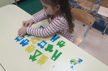 Рәсем шөгылендә 12-нче номерлы икенче кечкенәләр төркемендә тәрбияләнүчеләр, пумала белән туры үткәрергә тырышып, бияләйләр бизәде. Шул ук вакытта алар төсләрне кабатладылар (кызыл, сары).