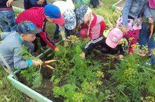 Балалар бакчасында тәрбияләнүчеләр тәрбиячеләр белән берлектә кечкенә бакчада төрле яшелчәләр утырталар.