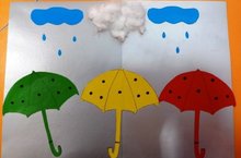 Дождливую погоду можно использовать во благо и для поднятия настроения сделать аппликацию «Разноцветные зонтики».Задачи: закреплять навыки работы с бумагой (без помощи ножниц, украшать шаблон зонтика мелкими яркими обрывками и комочками цветной бумаги,развивать мелкую моторику рук и координацию глаз, аккуратно наклеивать, вызвать интерес к созданию яркой работы, воспитывать желание участвовать в творческой деятельности.Яңгырлы һава торышы булганда кәефне күтәрү өчен "Төсле кулчатыр" аппликациясен ясарга мөмкин. Төп бурычлар: кәгазь белән эшләү күнекмәсен ныгыту ( кайчы кулланмыйча кулчатыр шаблонын төсле кәгазь кисәкләре белән бизәү); кул моторикасын, күз координациясен үстерү;пөхтә ябыштыру күнекмәсен үстерү;матур эш башкаруга өндәү; иҗади эштәкатнашу теләге тәрбичләү. Аппликациягә тотыныр алдыннан без балалар белән берлектә, алар алып килгән кулчатырларын карадык. Кулчатырларның формалары төрле, төсләре шулай ук төрле булулары турында әңгәмә алып бардык. Кулчатырлар турында табышмаклар чиштек, бармак гимнастикасы ясадык, биеп алдык, "Кояш һәм яңгыр" уенын уйнадык . Безнең кулчатырларыбыз бик күркәм килеп чыкканга күрә , безнең кәефләребездә күтәрелде. -