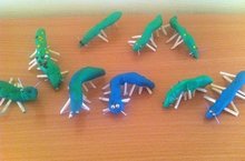 Дети раскатывают удлиненные цилиндры прямыми движением ладоней и видоизменение формы - изгибание, свивание. Для ножек сороконожек дети используют готовые бытовые и природные формы- спички, бусинки. Детям нравится лепить различные фигурки из пластилина. Этот процесс приносит не только удовольствие, но и положительное влияние на развитие детей.