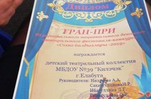 Бүген Менднлеев шәһәрендә III региональ "Сәхнә йолдызлары - 2019" милли балалар театр фестиваль-конкурсы узды. Безнең балалар бакчасы "Кечкенә йолдызлар" төркеме Гран-прига лаек булдылар. Котлыйбыз!!!