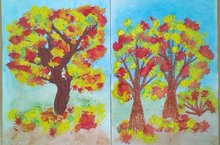Наступила осень,Пожелтел наш сад.Листья на берёзеЗолотом горят.Не слыхать весёлыхПесен соловья.Улетели птицыВ дальние края. -