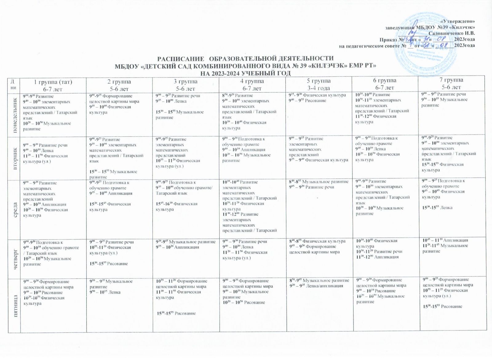 Расписание образовательной деятельности на 2023-2024 учебный год