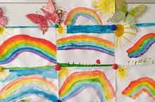 В подготовительной группе №2 одному из красивейших явлений природы была посвящена беседа «Образование радуги», были проведены весёлые игры, запускали мыльные пузыри (в летающих мыльных пузырях на солнце можно увидеть радугу), а также дети нарисовали свою весёлую радугу.