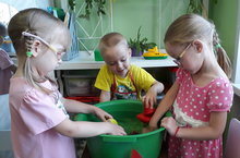 Сегодня в детском саду №26 был проведен «День воды». В ходе бесед дети дошкольного возраста закрепили знания о правилах поведения на воде, нарисовали рисунки на тему «Море, море…». Во всех группах развлекались, участвуя в «Мокрых играх», организованных воспитателями. Малышам особенно понравились игры-эксперименты «Тонет-не тонет», «Танцующий корабль», «Мыльные пузыри», а старшим дошкольникам - игры: «Веселые пузырьки» (водный оркестр), «Дождик», «Водяной», игра-эстафета «Кто быстрее?». Праздник удался.