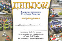 Диплом за III место в республиканских соревнованиях "Кубок ТАИФ-НК" по картингу в пгт. Камские Поляны / "ТАИФ-НК Кубогы" республика ярышында катнашу III урын өчен диплом 22.08.2022