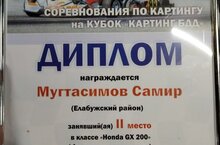 15.10.2023 елда Картинг берләшмәсе укучысы Мөгтәсимов Самир педагог до Саутин Е.В. җитәкчелегендә Картинг буенча ярышларда катнаша һәм Honda GX 200 классында II урынны ала.