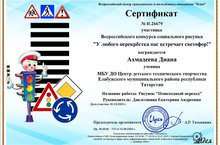 2020 елның 5 октябрендә Диана Әхмәдиева " теләсә кайсы кисешүдә безне светофор каршы ала!» педагог Дәүләтшина Екатерина Андреевна Рәхмәт хаты алды. Котлыйбыз!