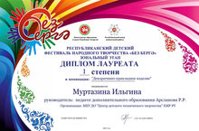 02.08.2023 г. обучающиеся объединения "ТХТ" Муртазина Ильгина педагог ДО Арсланова Р.Р., Панфилова Дарья педагог ДО Нечипорук Ф.Х. приняли участие в Республиканском детском фестивале народного творчества «Без бергэ» зональный этап и получили дипломы Лауреата I степени.
