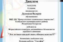 12.12.2022 г. "дизайн нигезләре" берләшмәсе укучысы Далецкая Валерия педагог Аскарова О. О. җитәкчелегендә «моны һәркем белергә тиеш, һичшиксез, 5кә!" Бөтенроссия конкурсында катнашты һәм I дәрәҗә диплом алды.
