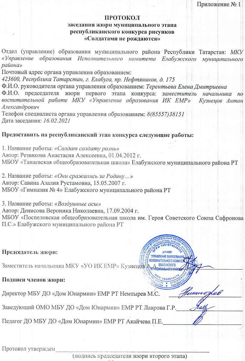 Протокол муниципального конкурса "Солдатами не рождаются (рисунки)