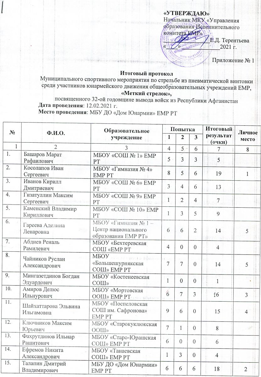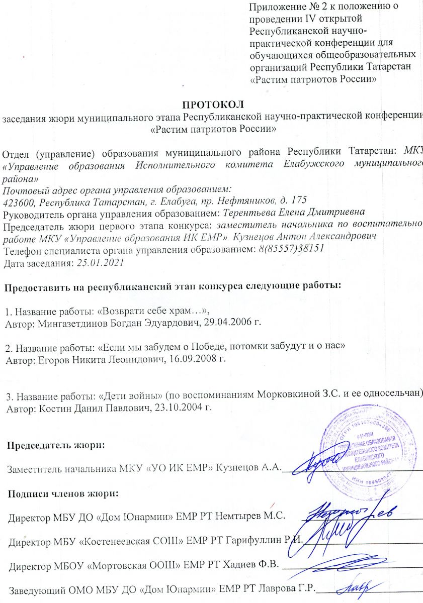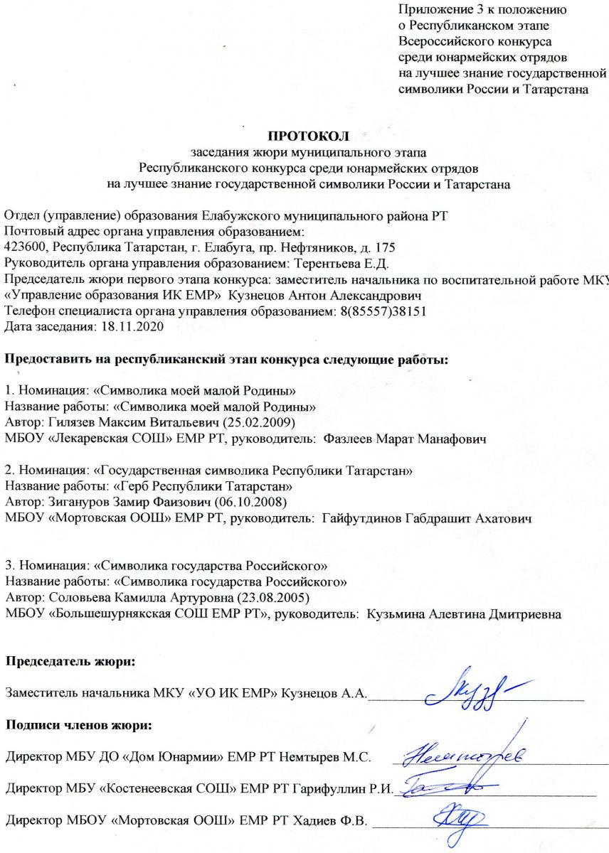 Итоговый протокол Муниципального этапа Конкурса на знание символики России и Татарстана