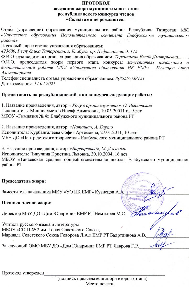 Протокол муниципального этапа "Солдатами не рождаются" (чтецы)