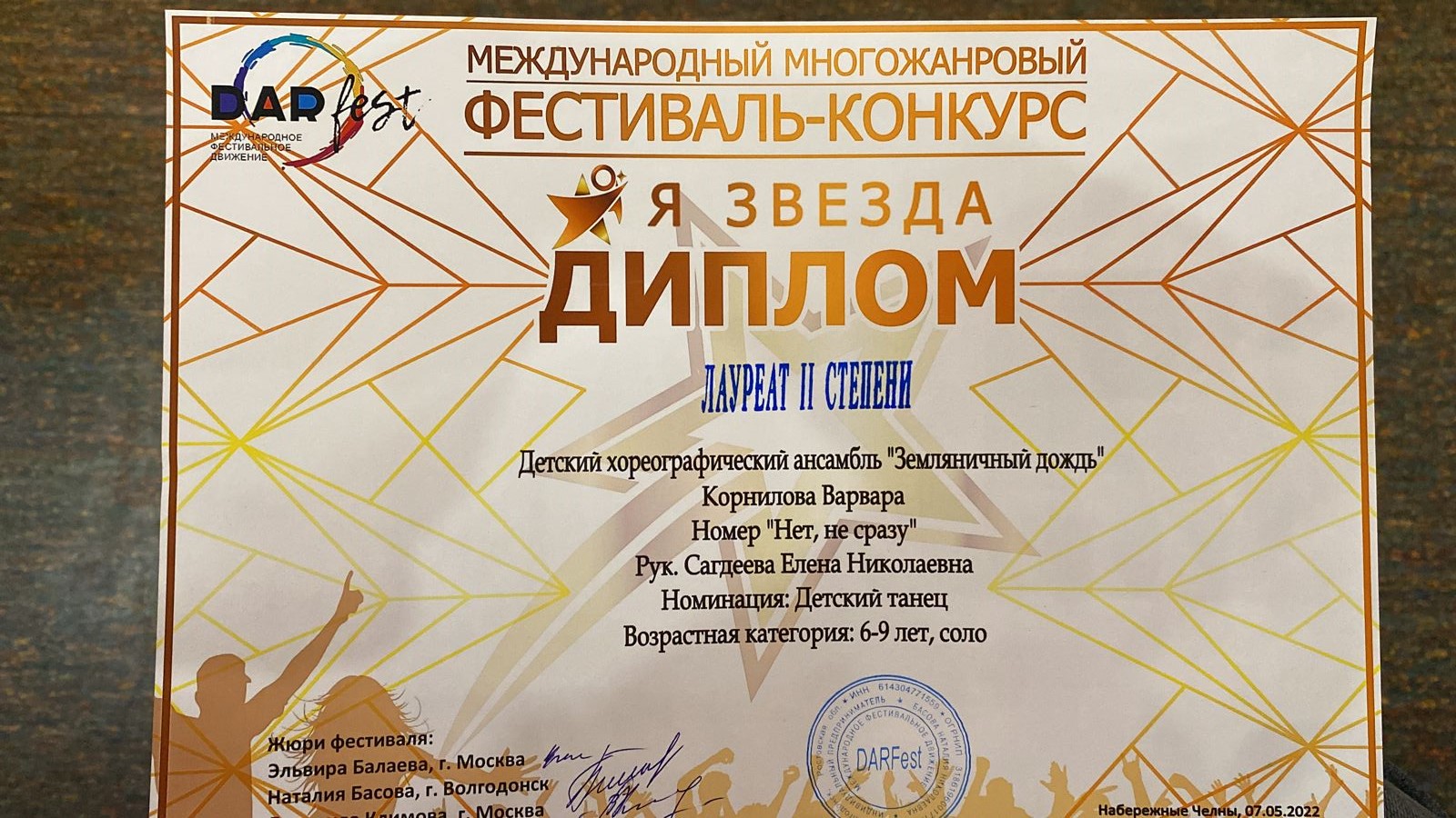 Сегодня, 7 мая 2022 года, в городе Набережные Челны состоялся Международный многожанровый фестиваль-конкурс "Я- Звезда!", учредителем которого стали международное фестивальное движение "DAR- fest".